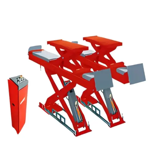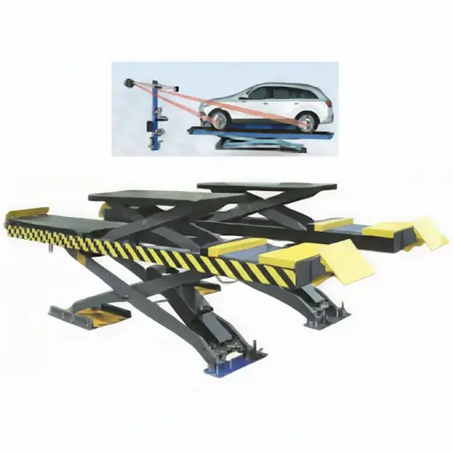 Cầu nâng cắt kéo kiểm tra góc đặt bánh xe 4.5 tấn, lắp chìm, có bàn nâng phụ (3 pha , màu đỏ RAL 3001, gồm đĩa lái).